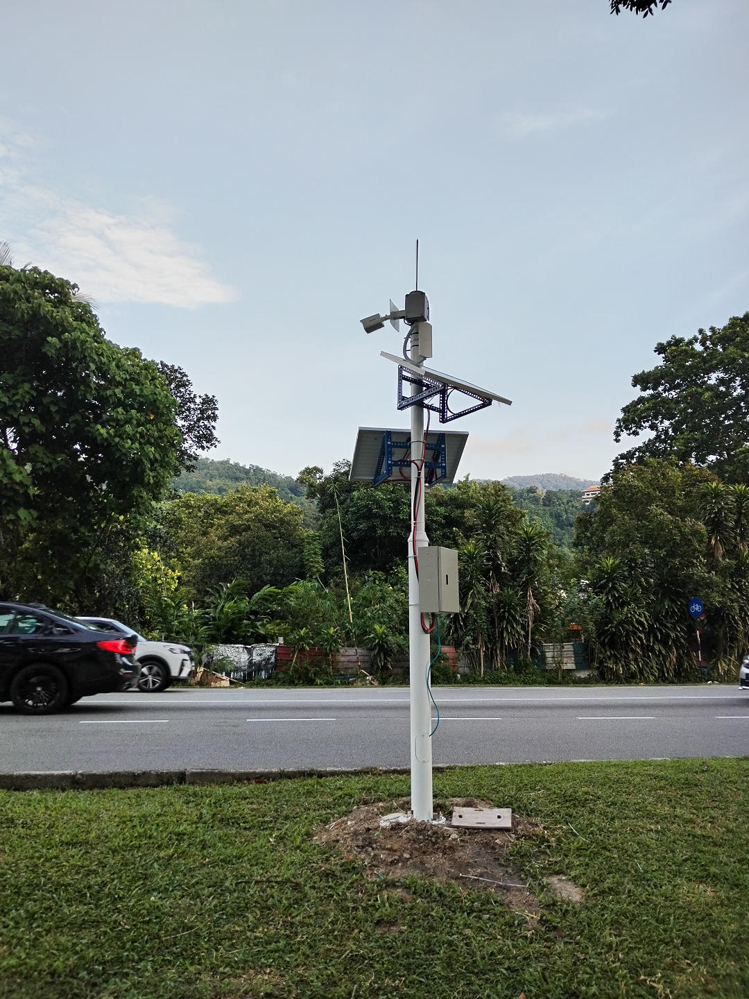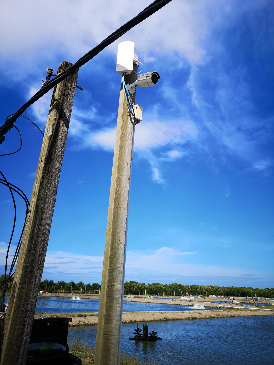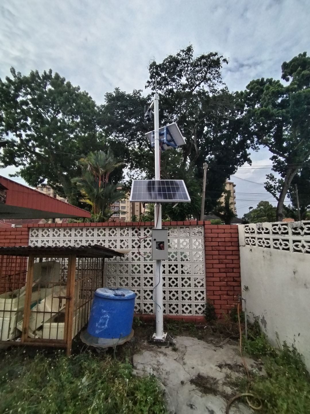 Solar-powered wireless cameras for gardens, durian farms, and ponds.